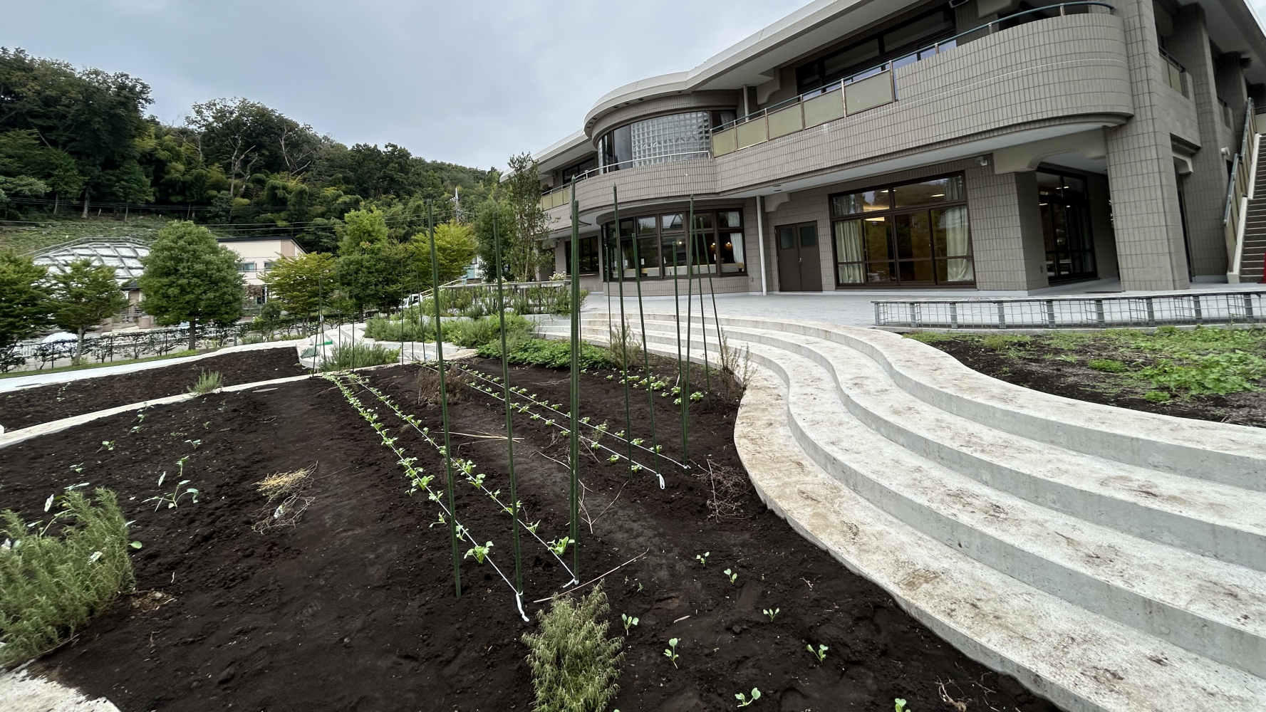 利用者・地域の方・施設職員が協働で運営する畑です。季節ごとに野菜等を栽培・収穫し、畑での農作業尾通して多世代交流や地域交流のばとして活用します。
